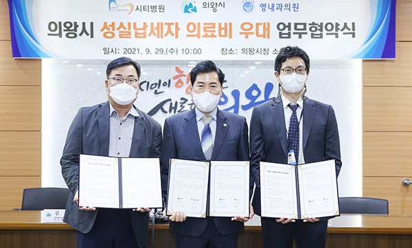 [일요주간 = 김용환 기자] 의왕시(시장 김상돈)는 29일 시티병원 및 영내과의원과 ‘의왕시 성실납세자 의료비 우대 업무협약’을 체결했다.