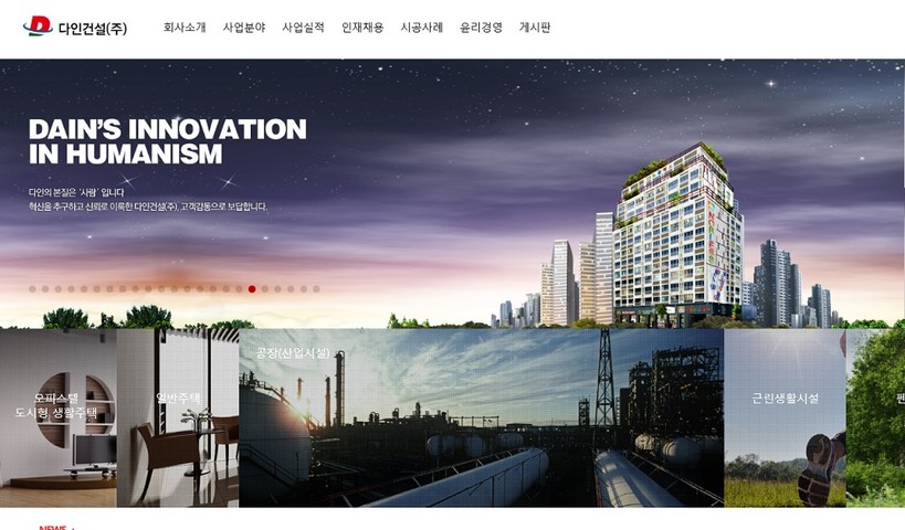 | ▲ (사진=다인건설 홈페이지 캡처) |