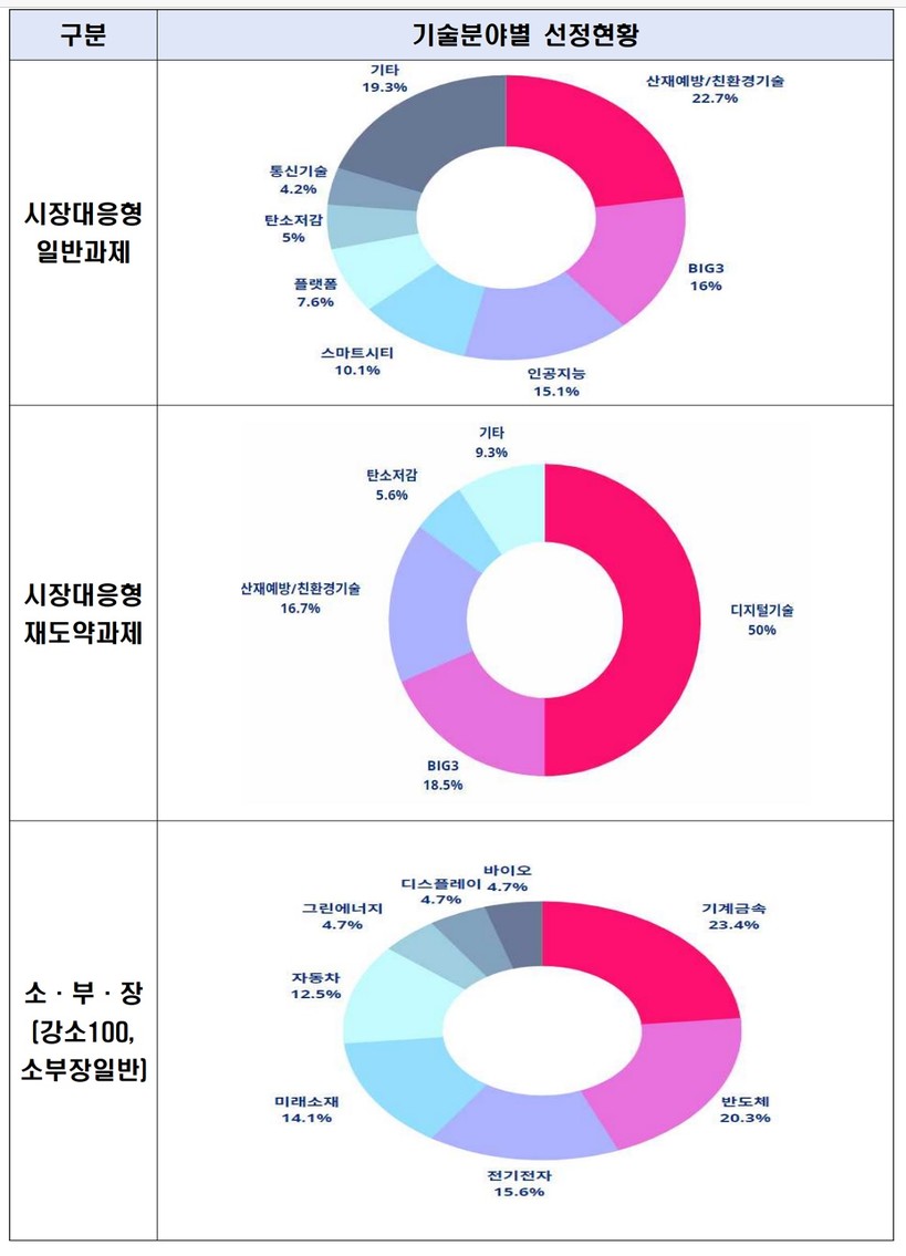 | ▲선정과제 통계(기술분야 중심). (사진=중소벤처기업부) |