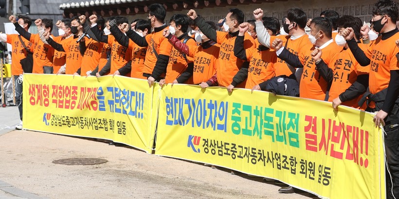 | ▲대기업의 중고차시장 진출 반대 집회를 하는 전국자동차매매사업조합원들. (사진=뉴시스) |