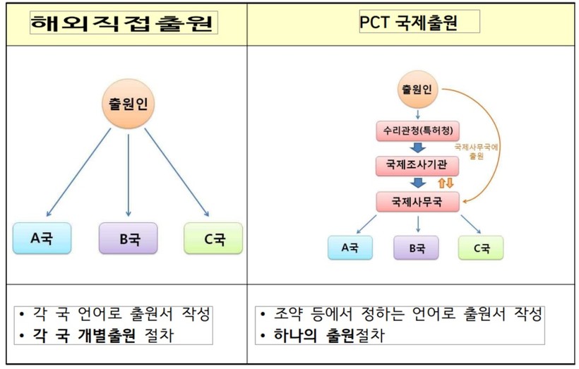 | ▲해외 ‘직접 출원’과 ‘PCT 출원’ 절차 비교. (사진=특허청) |