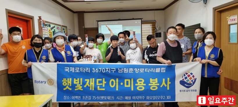 [일요주간 = 이태곤 기자] 국제 로타리 3670 지구 남원 춘향로타리클럽 에서는 지난 27일(화) 오후 14:30분 햇빛재단(장애인부모회).이.미용봉사를 다녀왔다고 밝혔다.