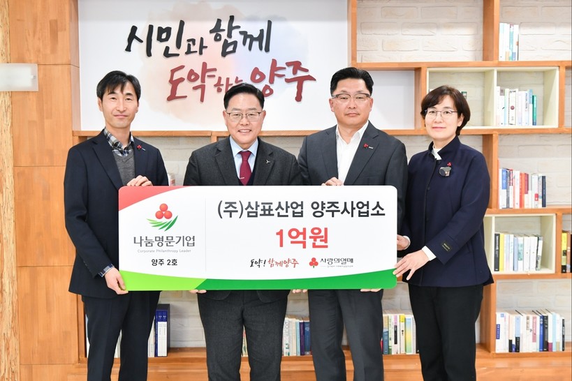 양주시에 5000만 원을 기부한 삼표산업은 지난해에도 5000만 원을 전달, 총 1억 원 기부를 통해 나눔명문기업에 가입하며 소외계층에 온정의 손길을 전했다.