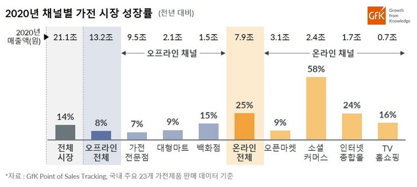 | ▲2020년 채널별 가전 시장 성장률. (사진=GfK) |