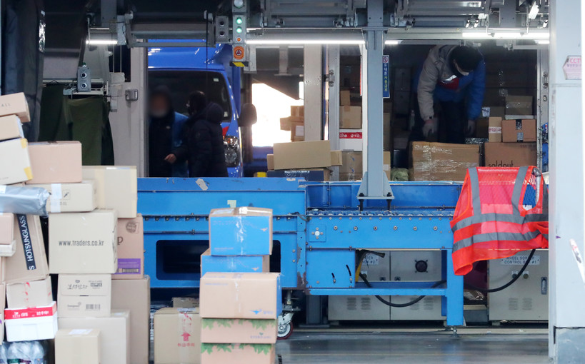 | ▲ 전국택배노동조합 CJ대한통운 지부 무기한 총파업을 하루 앞둔 27일 오전 서울의 한 CJ대한통운 물류센터에서 직원들이 택배분류 작업을 하고 있다. (사진=뉴시스) |