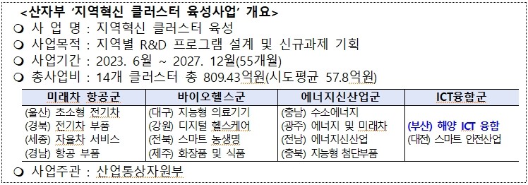 | ▲ 산자부 ‘지역혁신 클러스터 육성사업’ 개요(이미지=부산시) |