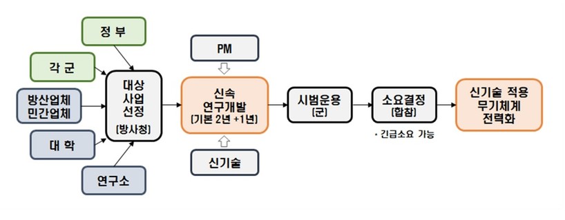 | ▲신속연구개발사업 절차. (사진=방위사업청) |