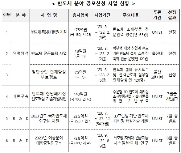| ▲ 반도체 분야 공모신청 사업 현황(이미지=울산시) |