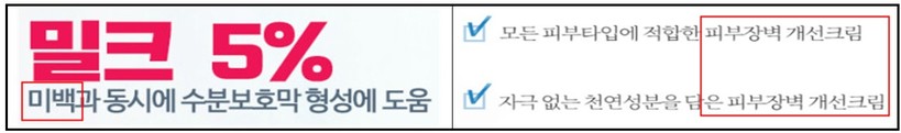 또 4개 제품은 기능성을 인증받지 않은 일반 원료가 피부 미백에 효과가 있는 것처럼 표현하거나 과학적·객관적 근거 없이 ‘피부장벽 개선’과 같은 표현을 광고에 사용했다.