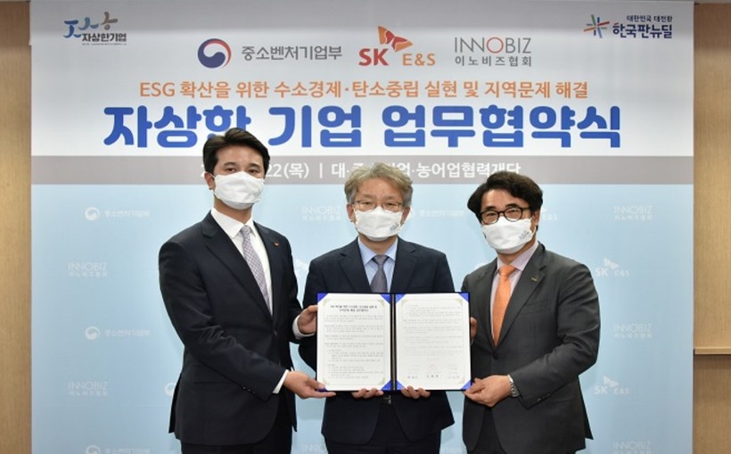 중소벤처기업부는 지난 22일 서울 구로 대·중소기업농어업협력재단에서 SK E&S·이노비즈협회와 함께 ‘ESG 확산을 위한 수소경제·탄소중립 실현과 지역문제 해결’을 주제로 자상한 기업 업무협약을 했다고 23일 밝혔다.