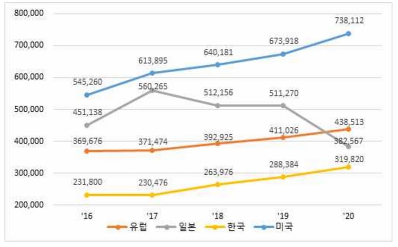 상표출원은 전 세계적으로 증가 추세다. 지난해에도 일본을 제외한 미국·중국 등 주요 다출원 국가는 출원이 전년보다 증가한 것으로 나타났다.