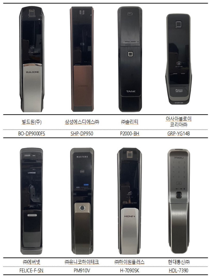 8개 브랜드 제품은 ▲빌드원(BO-DP9000FS) ▲삼성에스디에스(SHP-DP950) ▲솔리티(P2000-BH) ▲아사아블로이코리아(GRP-YG14B) ▲에버넷(FELICE-F-SN) ▲유니코하이테크(PM910V) ▲하이원플러스(H-7090SK) ▲현대통신(HDL-7390)이다.