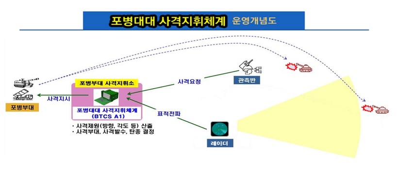 | ▲ 포병대대 사격지휘체계(BTCS) 운영 개념도. (사진=방위사업청) |