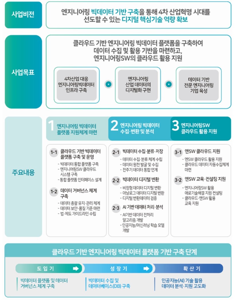 이번 사업은 빅데이터, 인공지능(AI) 등 4차 산업혁명 기술과 이미 축적된 우수 엔지니어링 지식과 융합해 엔지니어링 산업의 고부가가치화 기반을 마련하기 위해 진행한다.