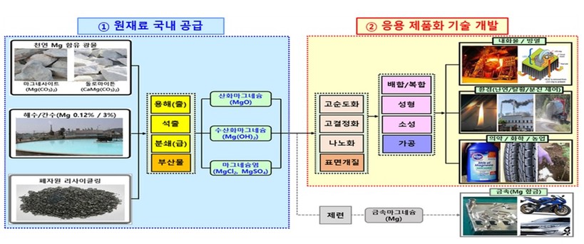 이번 사업은 마그네슘(Mg)계 원재료 국내 공급과 응용제품 개발 2개 분야로 진행된다.