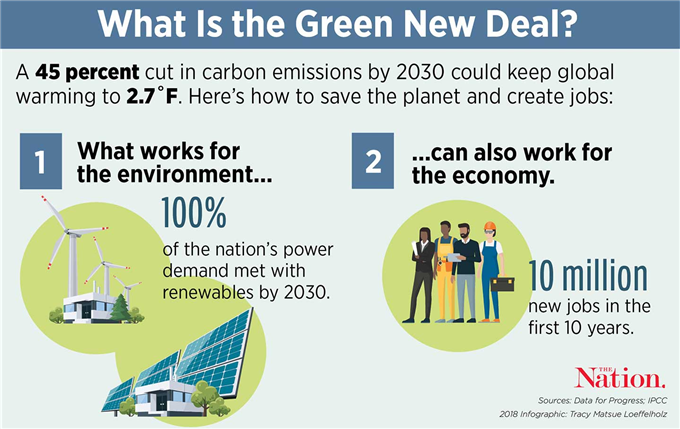 미국의 그린뉴딜은 대규모의 정부 투자를 기반으로 일자리 창출과 사회 정의를 실현한다는 점에서 과거에 추진되었던 관련 정책들과 차별화된다. 결의안은 2018년 IPCC의 보고서와 미국 13개 연방기구가 기후변화 영향을 과학적으로 전망한 보고서를 근간으로 하는데, IPCC 보고서에 따르면 2030년까지 이산화탄소 배출의 45%를 감축하고, 2050년까지 탄소 제로를 실현해야 지구의 평균 온도 상승폭을 1.5도 이내로 제한할 수 있다고 한다.
