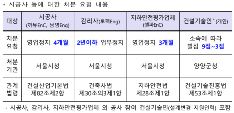 -국토부, 까뮤이앤씨와 남영엔지니어링 시공사 영업정지 4개월 등 엄중한 처분 관계기관에 요청