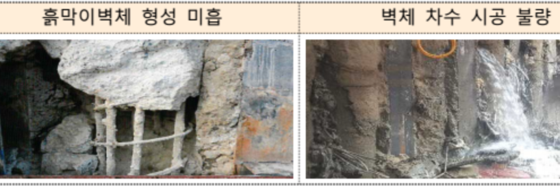 ◇흙막이벽체 형성 미흡...벽체 차수 시공 불량