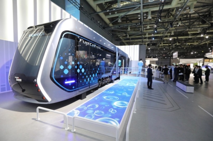 | ▲ 경기 고양시 킨텍스 전시장에 전시된 수소 트램. (사진=newsis) |