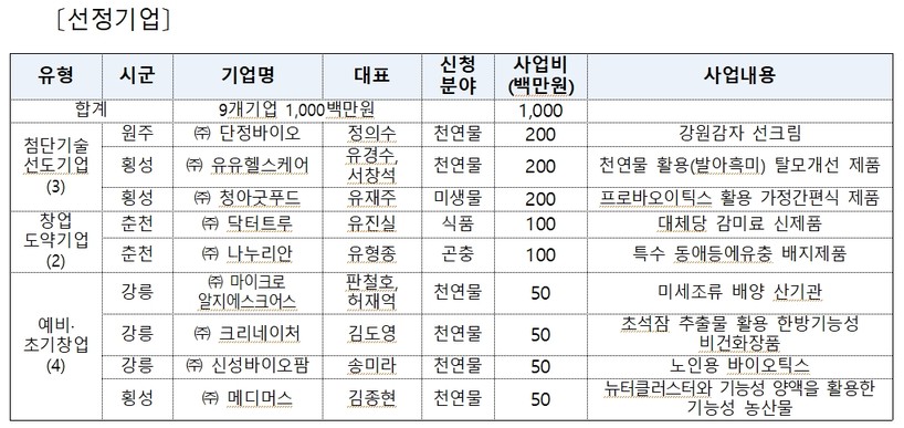 | ▲ 강원특별자치도, 「2023년 강원 그린바이오 선도기업 육성지원사업」 대상기업 최종 선정 발표 (사진=강원도청) |