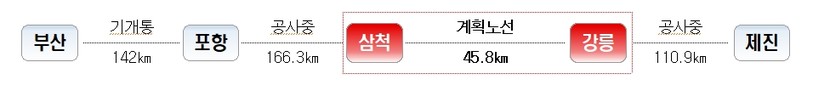| ▲ 삼척~강릉 고속화 철도 노선도(이미지=강원도청) |