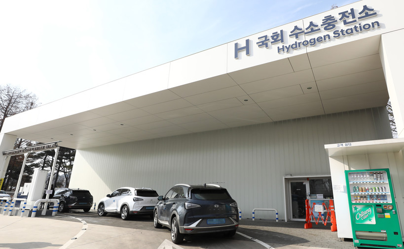 | ▲ 서울 영등포구 국회 수소충전소에서 수소차들이 충전을 위해 대기 하고 있다.(사진=newsis) |
