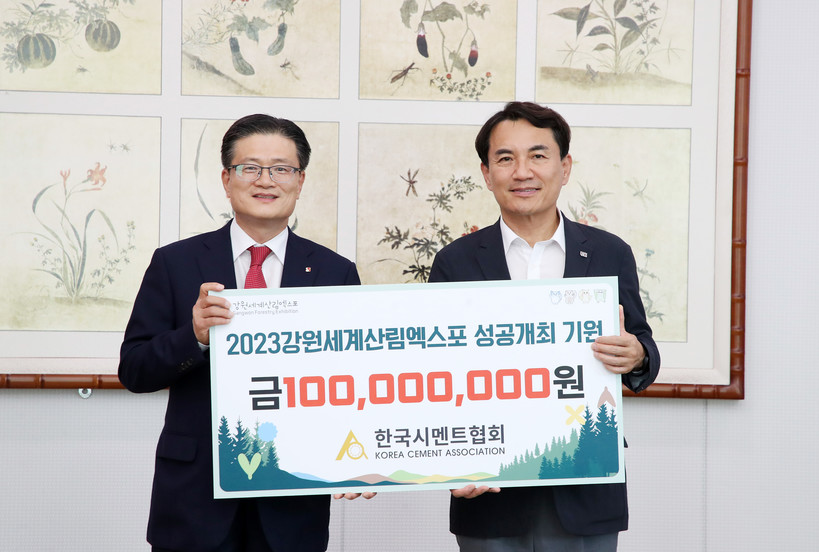 한국시멘트협회장은 “강원특별자치도에서 세계 최초로 산림을 주제로 한 ‘2023 강원세계산림엑스포’가 개최되어 기쁘게 생각하며, 지역사회와 상생발전, 지역경제 활성화를 위해 회원사의 임직원 모두가 산림엑스포의 성공 개최를 응원한다”고 밝혔다.