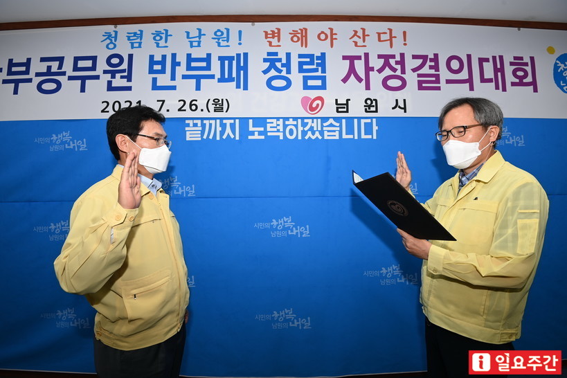[일요주간 = 이태곤 기자] 남원시가 시민에게 신뢰받는 공직사회 조성을 위해 간부공무원 반부패.청렴 자정결의 서약식을 개최하였다.