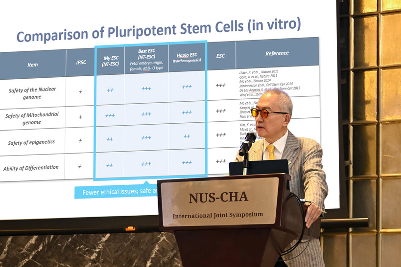 싱가포르 국립대는 세계 대학평가에서 8위, 아시아 1위에 오른 세계적 명문으로, 이번 심포지엄에는 차광렬 차병원·차바이오그룹 글로벌종합연구소장, 홍진욱 싱가포르 한국대사, 정엽생 싱가포르 국립대 의과대학장, 윤호섭 차 의과학대 연구부총장 등 주요 인사와 시드니 공과대학 교수 등 세계적 연구자들이 참석했다.