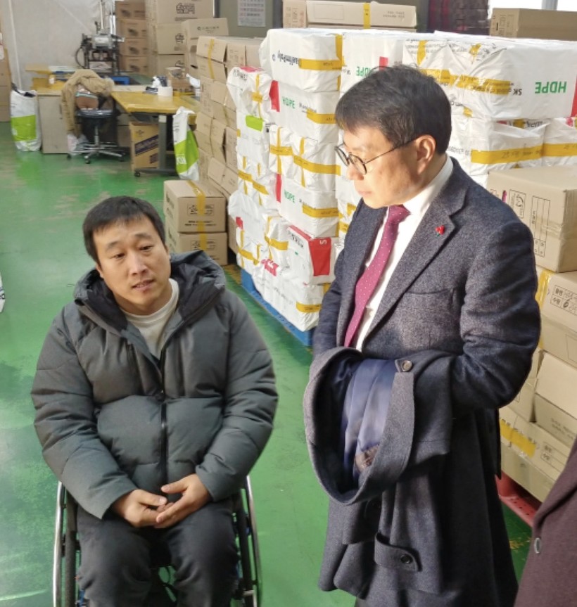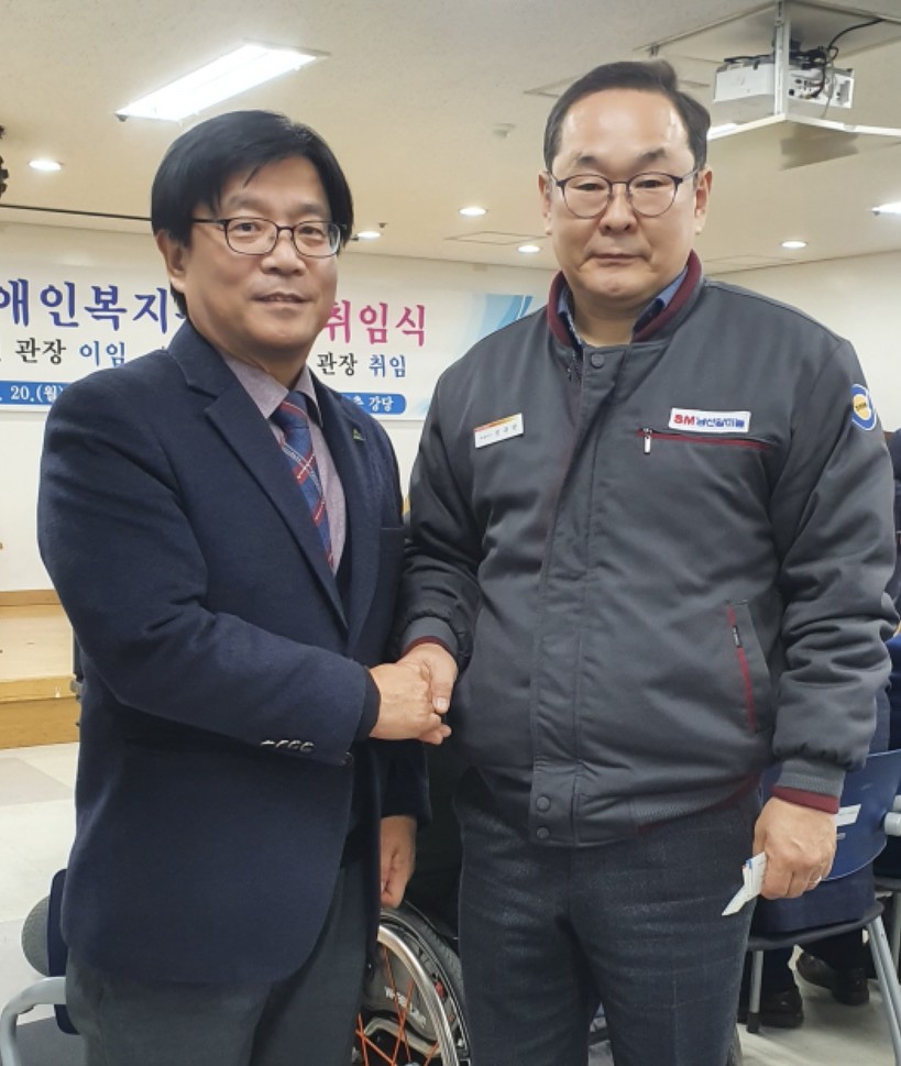 | ▲ 한국지체장애인협회 달성군지회 우승윤 회장, ㈜남선알미늄 장규한 대표이사 (사진=남선알미늄) |