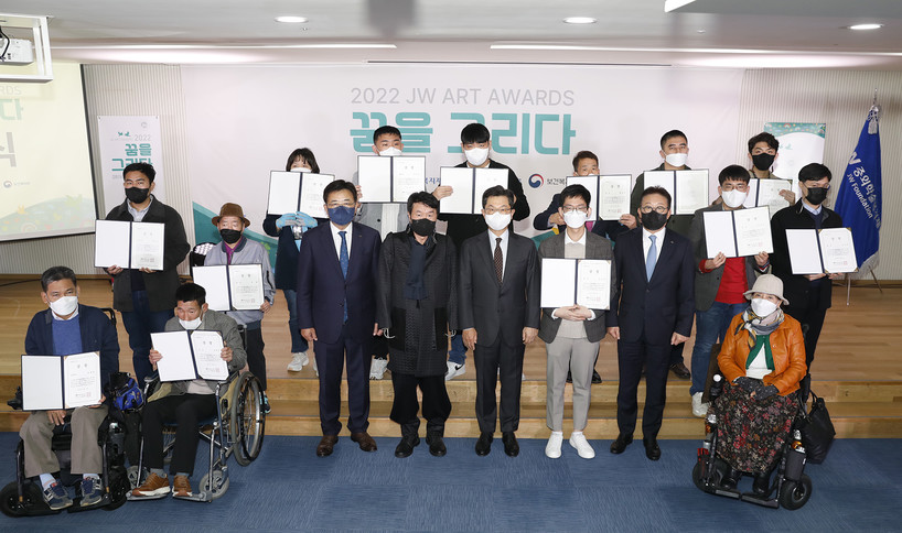 [일요주간 = 조무정 기자] JW그룹의 공익재단인 중외학술복지재단(이사장 이종호 JW그룹 명예회장)은 16일 서울 서초동 본사에서 국내 최초의 장애인 미술 공모전인 ‘2022 JW 아트 어워즈’ 시상식을 개최했다고 밝혔다.