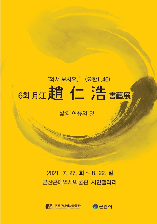 [일요주간 = 최준호 기자] 군산시 근대역사박물관은 오는 8월 22일까지 박물관 시민열린갤러리(1층)에서 조인호 작가의 '삶의 여유와 멋'이라는 주제로 서예전을 개최한다고 29일 밝혔다.