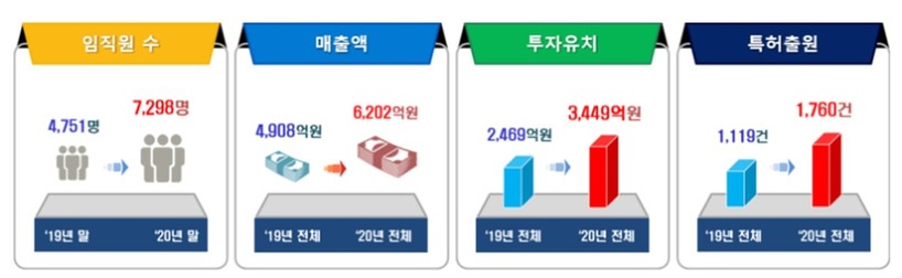 또 지난해 한해 3449억원의 투자유치에 성공했다. 이는 2019년 2469억원과 비교할 때 총 980억원(39.7%↑) 증가한 수치다.