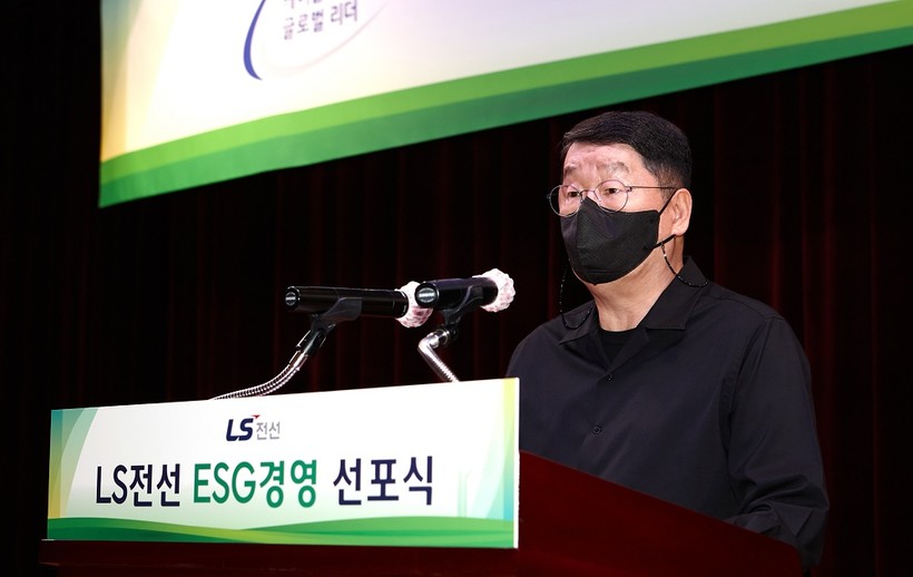 | ▲ 구자엽 LS전선 회장이 LS타워에서 ESG 경영 비전 선포 기념사를 하고 있다. (사진=LS전선) |