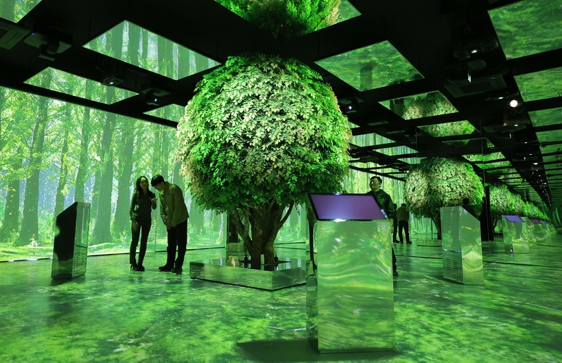 | ▲SK임업은 전국에 걸쳐 나무 400만 그루를 심어 서울 남산의 40배 크기 숲을 조성했다. 사진은 충청북도 충주 인등산에 위치한 '탄소중립 경영' 담은 디지털 전시관.(사진=newsis) |