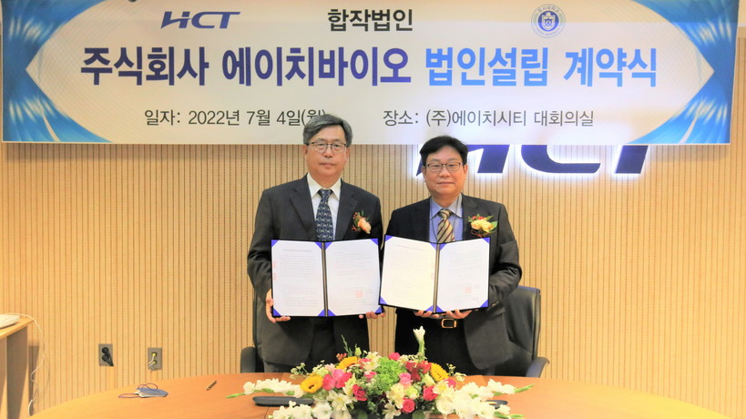 | ▲호서대학교 산학협력단은 ㈜에이치시티가 손잡고 합작법인 ‘주식회사 에이치바이오’ 설립 계약을 체결했다.(사진=호서대학교) |