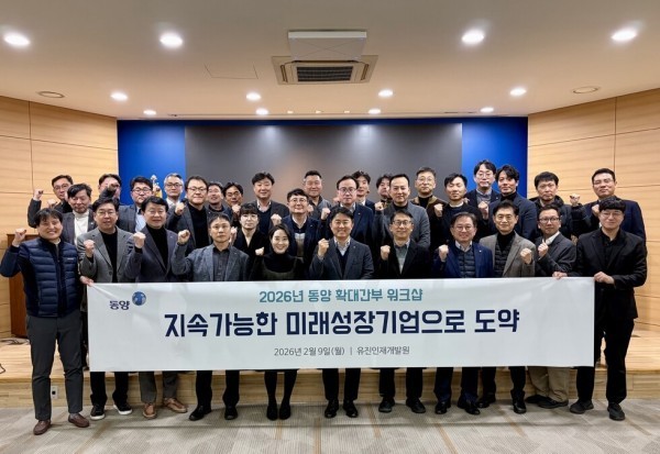 동양이 지난 9일 박주형 대표이사를 비롯한 임직원들이 참석한 가운데 ‘2026년 전사 확대간부 워크숍’을 개최하고 미래 성장을 위한 구체적인 로드맵을 수립했다. 이번 워크숍은 부서별 KPI 점검은 물론 2030년 미래 비전을 신문기사 형식으로 시각화해 공유함으로써 중장기 전략에 대한 전사적 공감대를 형성하고 실행력을 강화하는 계기가 됐다.