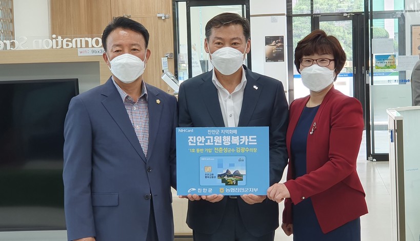 전춘성 진안군수와 김광수 진안군의회 의장에 따르면 카드형 진안고원 행복상품권 출시를 기념해 NH농협은행 진안군지부에서 카드 발급을 개시했다.