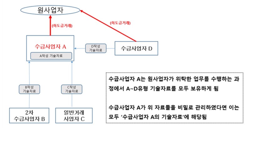 특히 원사업자의 거래상 지위 남용행위를 방지하고자 하는 하도급법 취지를 고려하면 수급사업자가 소유한 기술자료로 좁게 볼 필요가 없고, 이러한 행위가 중소업체들의 기술혁신 의지를 봉쇄해 우리 산업의 경쟁력을 저해할 가능성이 크므로 수급사업자가 보유한 기술자료까지 두텁게 보호하는 것이 타당하다고 봤다.