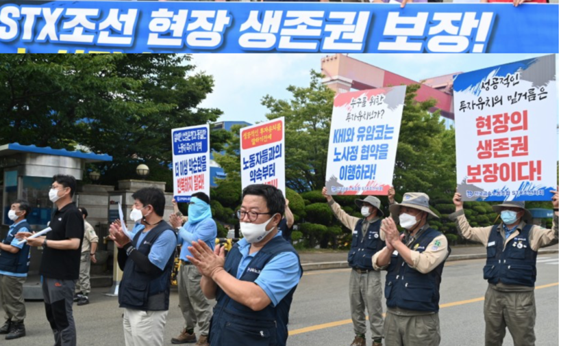 그러면서 "이후 지부와 지역대책위, 지회의 투쟁으로 노사정 협의가 만들어졌으며 유급휴직을 보장받기도 했다”면서 "지금의 STX조선이 유지되는 것은 2013년 이후 현재까지 이어진 노동자의 희생이 있었기에 가능한 일이었다”고 주장했다.