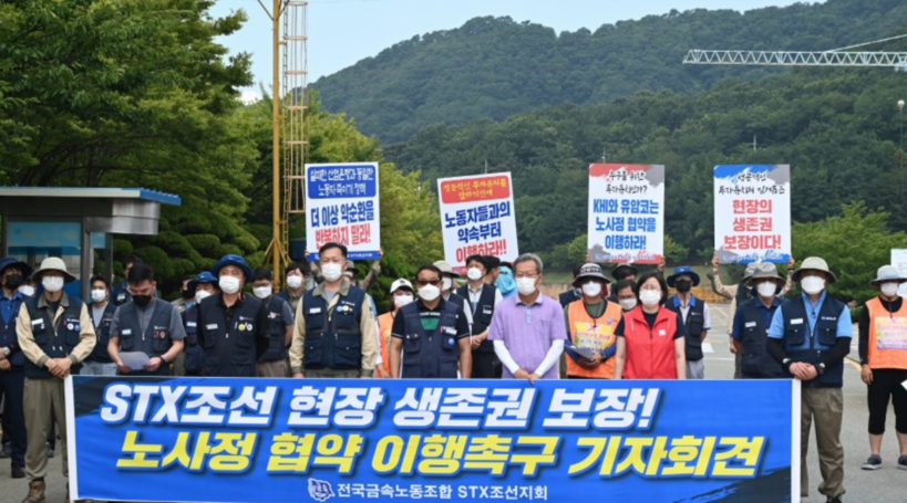앞서 노조는 최근 STX조선 앞에서 ‘현장 생존권 보장! 노사정 협약 이행촉구 기자회견’을 개최하고 "STX조선은 지난 2013년 자율협약에 들어선 후 2차례의 법정관리를 진행하며 노동자의 희생을 강요했다”며 "지난 2016년 인적구조조정 시도가 있었으며, 2018년에는 회생계획안이라며 생산직 50%이상 축소안의 인적 구조조정을 통보하기도 했다”고 당시 상황을 설명했다.