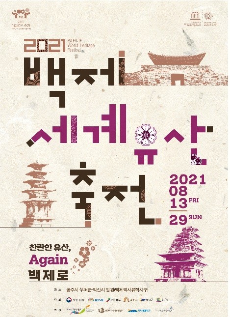 [일요주간=정진호기자] 전북도는 오는 13일부터 29일까지 17일간 유네스코 세계유산으로 등재된 백제역사 유적지구인 익산시와 공주시, 부여군에서 ‘찬란한 유산, AGAIN 백제로!’라는 주제로 2021년 백제 세계유산축전이 열린다고 12일 밝혔다.