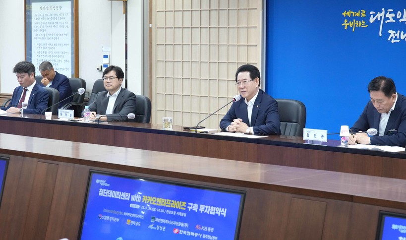 [일요주간=김영란 기자] 전라남도는 26일 도청 서재필실에서 장성 남면에 3만 3천㎡ 규모의 클라우드 데이터센터를 구축하는 ‘첨단데이터센터 with 카카오엔터프라이즈’ 투자협약을 하는 등 미래 전략산업 육성에 본격 나섰다.
