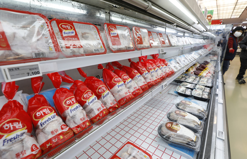 | ▲공정거래위원회에 따르면 하림, 올품 등 16개 닭고기 업체들이 수년간 가격 담합을 해온 것으로 드러났다. 서울의 한 대형마트에 생닭이 진열돼 있다.(사진=newsis) |