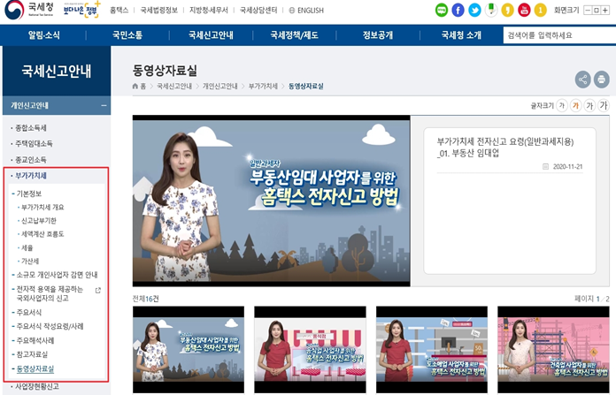 | ▲ 국세청 홈페이지 동영상 게시 화면.(사진=국세청) |
