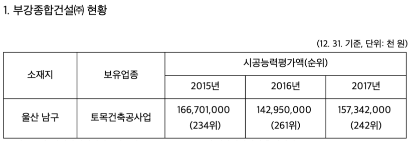 부강종합건설의 법 위반 내용을 보면 서면 미교부 행위의 경우 2016년 7월 울산 울주군 소재 복합석유화학시설건설공사(울산 울주군 은산읍 S-Oil 잔사유 고도화 시설 건설공사)에서 철근콘크리트공사를 위탁한 후 설계변경에 따른 추가공사를 지시하면서 공사대금이 증액됐음에도 이를 반영한 서면을 발급하지 않았다.