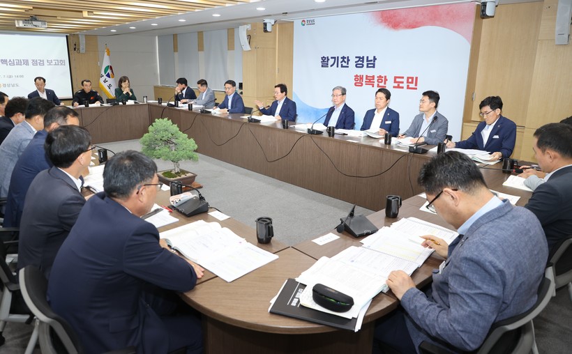 [일요주간=김영란 기자] 박완수 경남도지사는 7일 도청 도정회의실에서 ‘2023년 2분기 도정 핵심과제 점검보고회’를 직접 주재해 공약을 포함한 도정현안 이행상황을 점검했다.