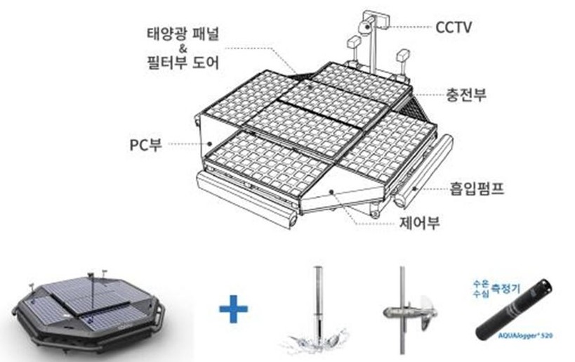 에코로봇은 가정용 청소로봇과 유사한 방식으로 작동되는데 녹조 다량 증식 지역에서 탁월한 제거 효과가 있을 것으로 기대하고 있으며 동력은 자체 태양광 발전 패널을 이용하는 등 최첨단 친환경 녹조 제거 설비로 알려져 있다.
