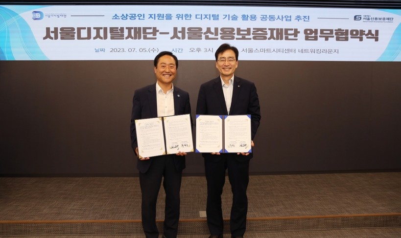 지난 5일(수) 15시 서울디지털재단(이사장 강요식)과 서울신용보증재단(이사장 주철수)은 「소상공인 지원을 위한 디지털 기술 활용 공동사업 추진 업무협약」을 체결했다.