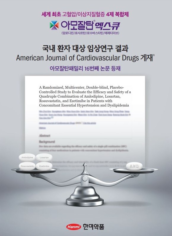 한미약품 관계자는 “세계 첫 고혈압·이상지질혈증 치료 4제 복합신약의 탄탄한 임상적 근거를 국제학술지 등재를 통해 입증할 수 있게 됐다”며 “의료진과 환자 모두에게 도움을 줄 수 있는 경쟁력 있는 제품 개발을 위한 R&D 역량 강화에 더욱 매진하겠다”고 말했다.